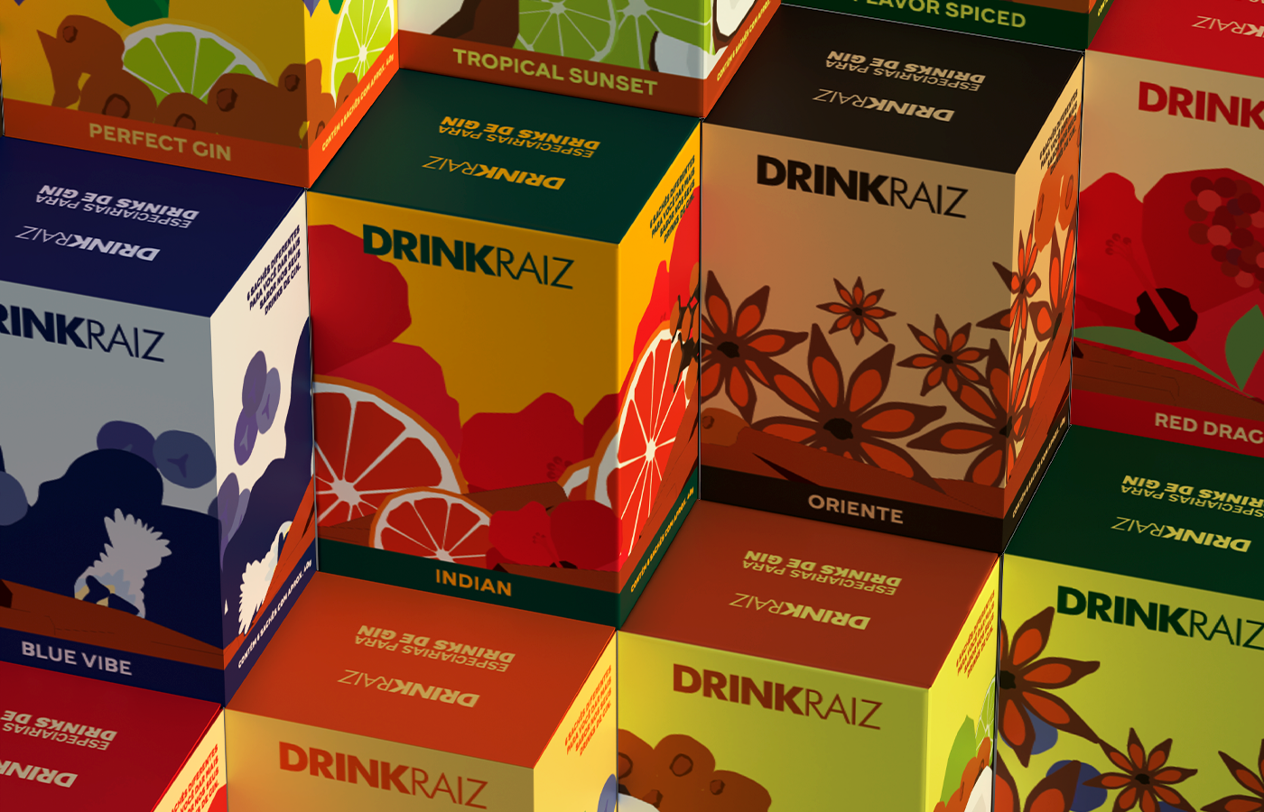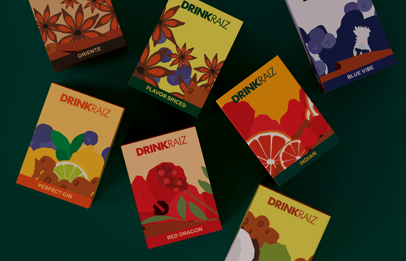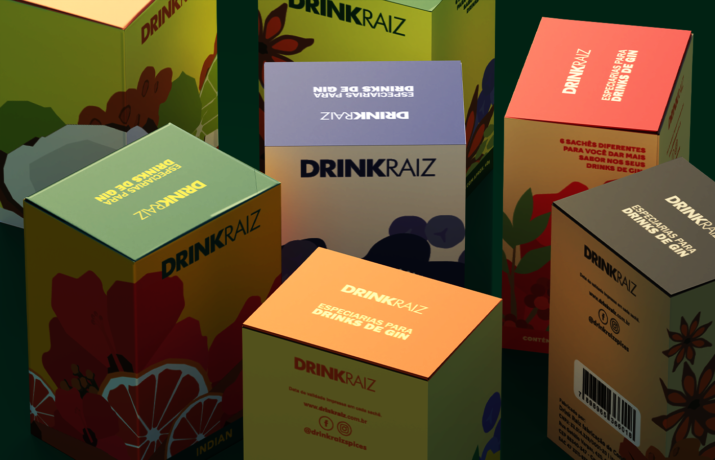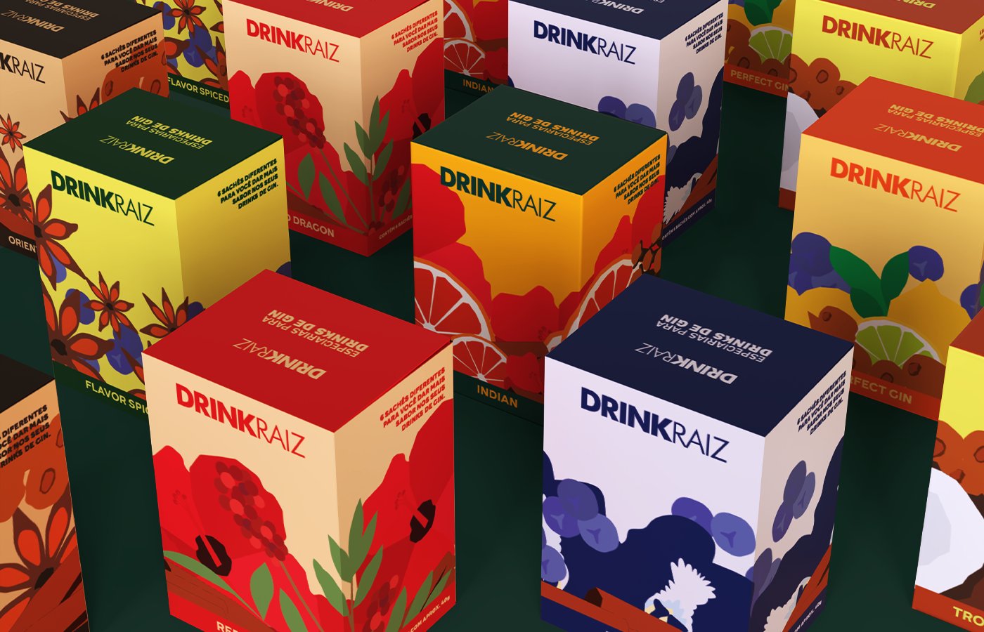 Drink Raiz é uma empresa centrada na venda de especiarias para bebidas com Gin. Com o crescimento do mercado devido à pandemia, notaram um aumento nas vendas e assim procuraram investir no design para melhor servir o seu público.